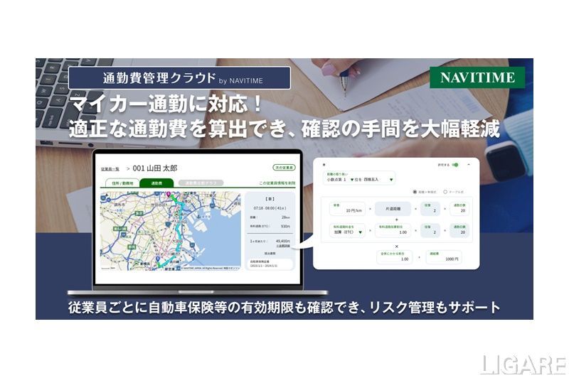 株式会社ナビタイムジャパンは1月25日、従業員の正確な通勤費をシステム管理できるWebサービス「通勤費管理クラウド by NAVITIME」で、マイカー通勤に対応すると発表した。