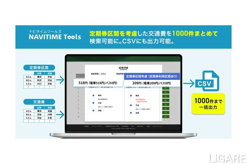 株式会社ナビタイムジャパンは2月14日、サイト上でCSVファイルをアップロードするだけで使える業務支援Webサービス「NAVITIME Tools」の「交通費まとめて検索」で、定期券区間を考慮した交通費計算に対応することを発表した。