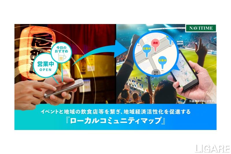 ナビタイムジャパンは7月14日、自治体や観光協会、スポーツクラブなどの観光振興やイベント開催などを行う企業・団体(以下、観光・イベント主体者)向けに、イベントと地域の飲食店や事業者をつなぎ、地域経済活性化をサポートする新たなソリューション「ローカルコミュニティマップ」を提供開始を発表した。