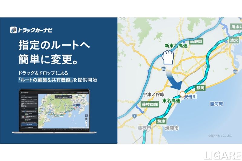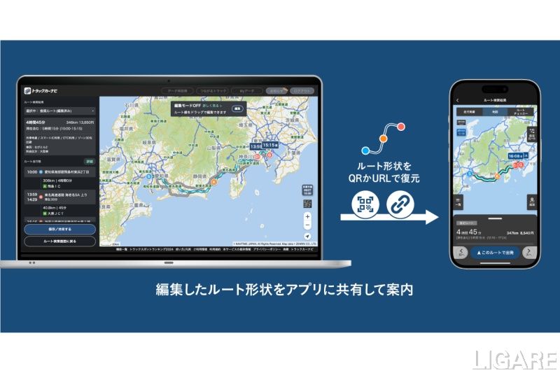 ナビタイムジャパンは8月28日、トラック専用カーナビアプリ「トラックカーナビ by NAVITIME」において、Web版でのルート編集機能と、スマホアプリへのルート共有機能を提供開始すると発表した。