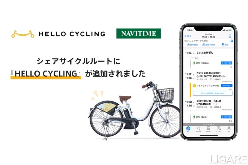 株式会社ナビタイムジャパン(以下、ナビタイムジャパン)は8月26日、シェアサイクルサービス「HELLO CYCLING」との連携を開始すると発表した。ナビタイムジャパン提供の総合ナビゲーションアプリ「NAVITIME」の「シェアサイクルルート」にて連携する。