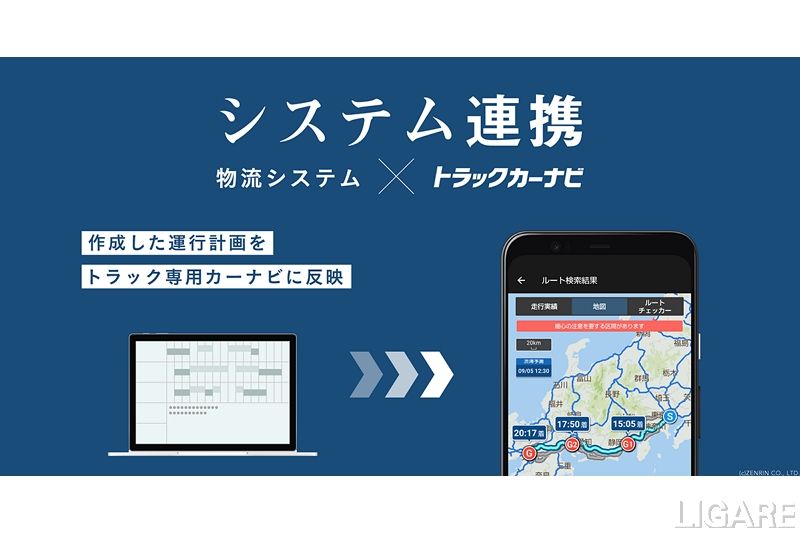 株式会社ナビタイムジャパンは、トラック専用カーナビアプリ「トラックカーナビ」を、さまざまな物流システムと連携できる「システム連携機能」を提供開始する。9月5日付のプレスリリースで明かした。