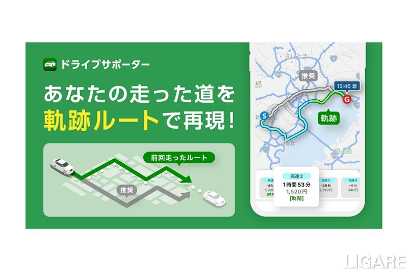 株式会社ナビタイムジャパンは、iOS向けのカーナビアプリ「NAVITIMEドライブサポーター」の有料会員向けに、ユーザーの実際の走行実績から再現する「軌跡ルート」を提供開始する。9月7日付のプレスリリースで明かした。