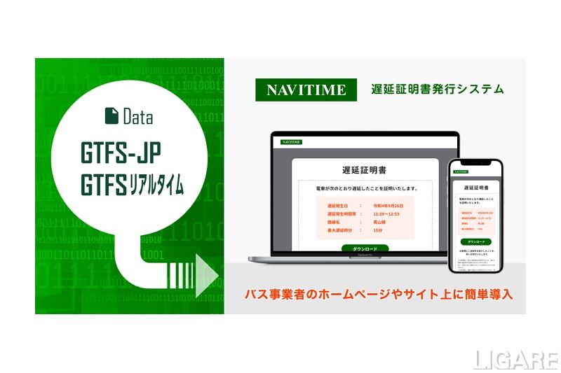 株式会社ナビタイムジャパン(以下、ナビタイムジャパン)は、鉄道・バス事業者向けソリューションにおいて、GTFS-JPとGTFSリアルタイムに対応した「遅延証明書発行システム」をバス事業者向けに提供開始する。9月26日付のプレスリリースで明かしている。