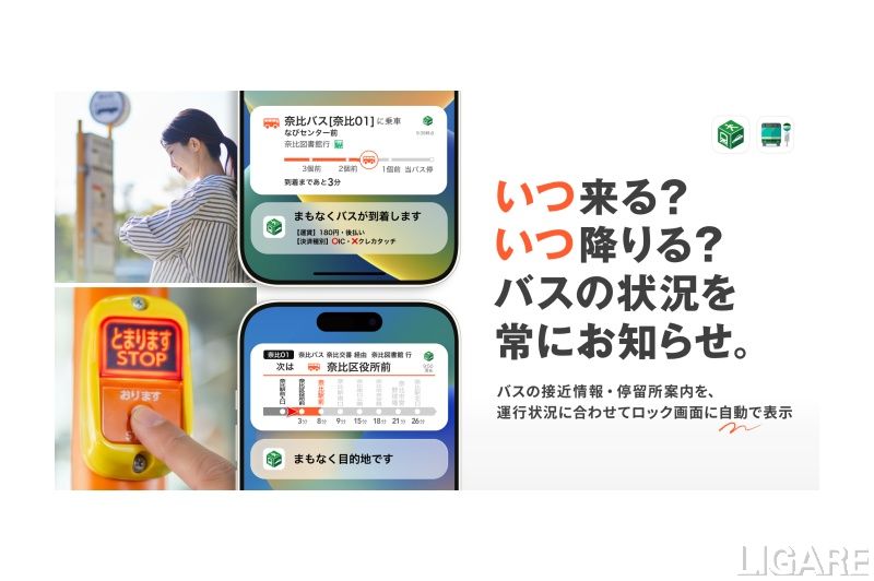 ナビタイムジャパンは10月21日、iOS向け「NAVITIME」、および「バスNAVITIME」で、iOSのライブアクティビティを活用したバスのリアルタイム案内の提供開始を発表した。