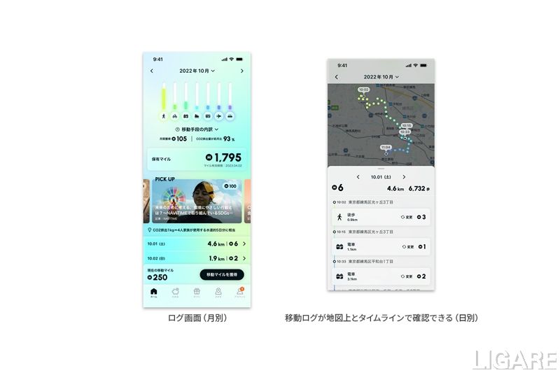 また、同アプリは、無料で利用でき、iOSにて先行リリースする。将来的には、Android OSも対応する予定だ。なお、同社は、今後、提携先を増やし、ミッションやギフトの拡充、移動手段判定精度の向上によるUX改善などを行っていくと述べている。