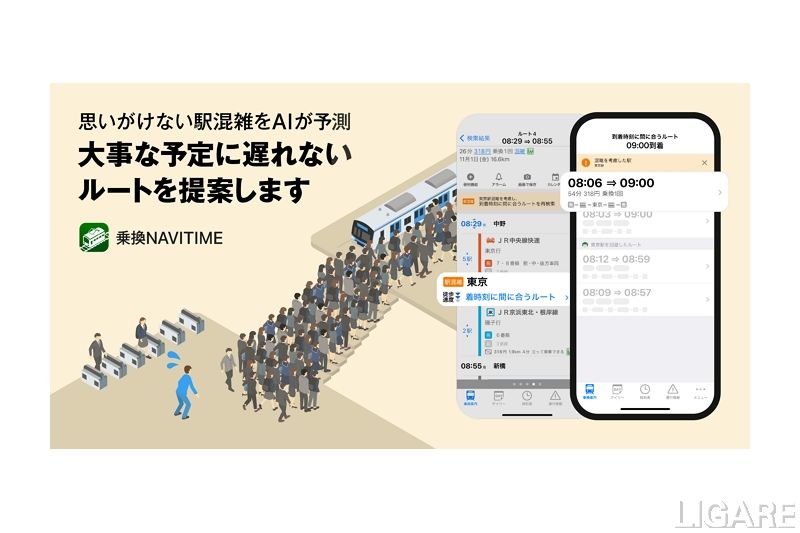 ナビタイム、AIによる駅混雑予測を活用した推奨出発時刻等を提供開始