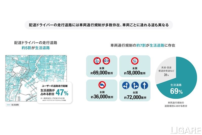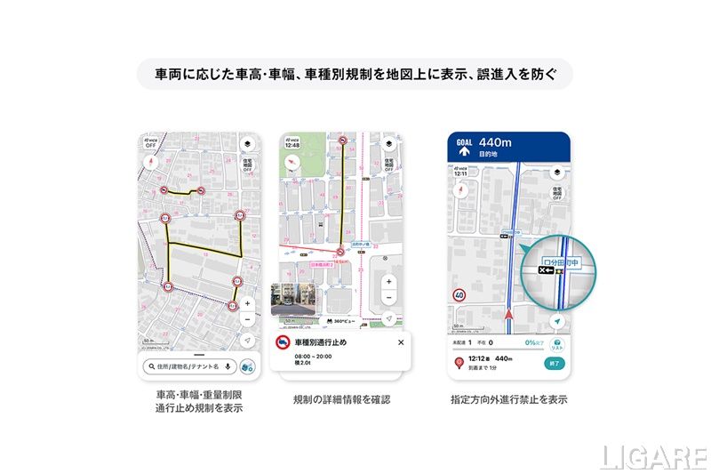 株式会社ナビタイムジャパンは12月7日、配達専用アプリ「配達NAVITIME」において、車種等を考慮したルート案内や、地図・ルート上に規制情報を表示する機能を提供開始すると発表した。