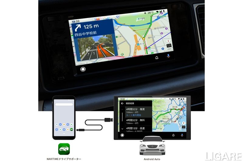 株式会社ナビタイムジャパン(以下、ナビタイムジャパン)のカーナビアプリ「NAVITIMEドライブサポーター」が、「Android Auto」に対応した。11月2日付のプレスリリースで明かしている。「Android Auto」は、Googleが提供する車載プラットフォームだ。