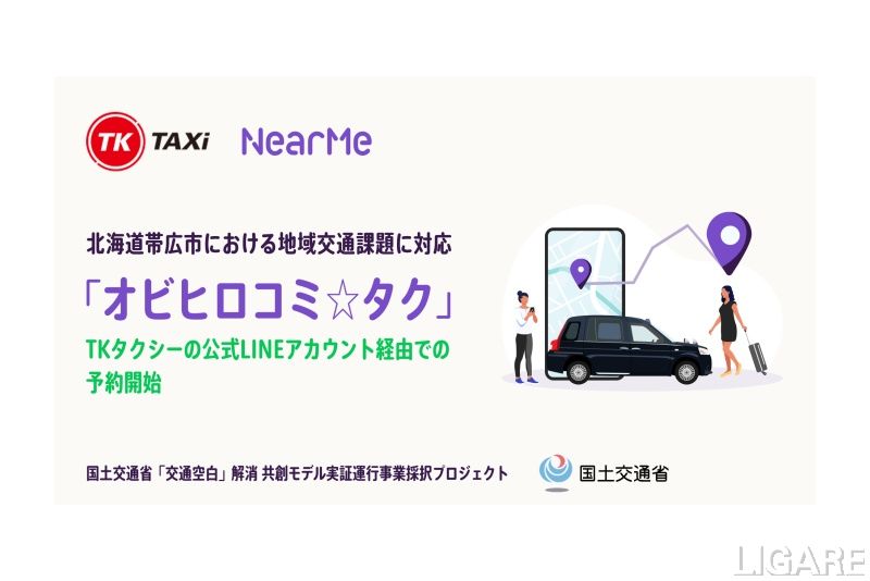 NearMe(以下、ニアミー)は12月10日、TKタクシーとの連携のもと、北海道帯広市において提供している配車サービス「オビヒロコミ☆タク」がTKタクシーの公式LINEアカウント経由での予約開始を発表した。