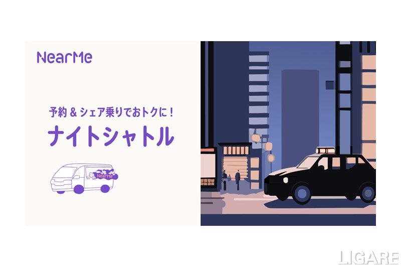 株式会社NearMe(以下、ニアミー)と日の丸交通株式会社(以下、日の丸交通)は12月21日、タクシーの「シェア乗りサービス」を夜間から早朝時間帯に限定したナイトシャトルとして予約・運行開始を発表した。