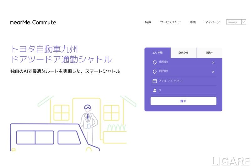 タクシーの相乗りアプリなどのサービスを手掛ける株式会社NearMe (以下、ニアミー )は、トヨタ自動車九州株式会社(以下、トヨタ九州)との共同実証実験として、九州エリアで通勤シャトル「nearMe.Commute」の運行を開始した。6月1日から開始した東京駅周辺と渋谷周辺の2エリアに続く事例となる。