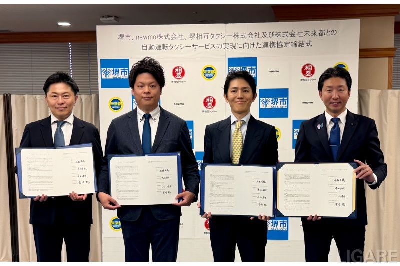 newmo、堺相互タクシー、未来都の3社は9月30日、堺市と、自動運転タクシーサービスの実現に向けた連携協定締結を発表した。