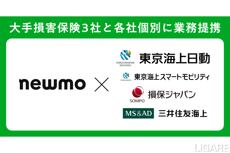 newmo株式会社(以下、newmo)は3月7日、東京海上日動火災保険株式会社、損害保険ジャパン株式会社、三井住友海上火災保険株式会社の3社と個別業務提携契約を各社と締結することで合意した。