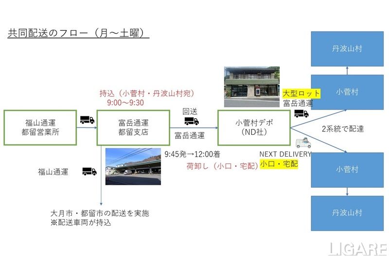 今回の共同配送では、福山通運の配送車両の削減を図ることで、年間約3tのCO2排出量を削減できる見込みだ。なお、6者は、他の物流会社にもこの取り組みを紹介し、理解してもらいながら連携先を増やしていくことでさらなる効率化を図っていくという。さらに、この配送スキームをしっかり定着させ、中山間エリアの共同配送モデルとして構築し、全国の地域に展開したいと述べている。
