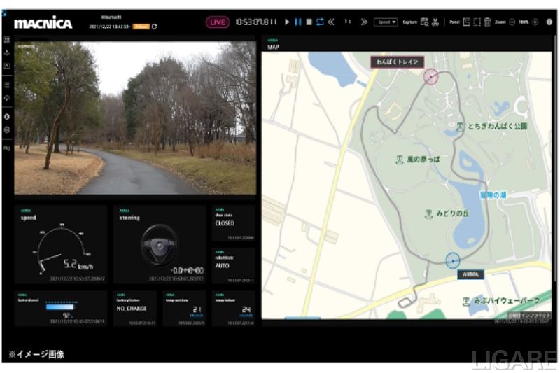 マクニカは、自動運転バスの運行、自動運転走行に必要なデータ取得・セットアップ、技術的資料・取得データを提供する。また、車両の走行データをマクニカ製遠隔監視システム「マクニカモビリティデータプラットフォーム」に連携させる。これにより、自動運転バスの走行情報をリアルタイムに離れた場所で確認することが可能だ。