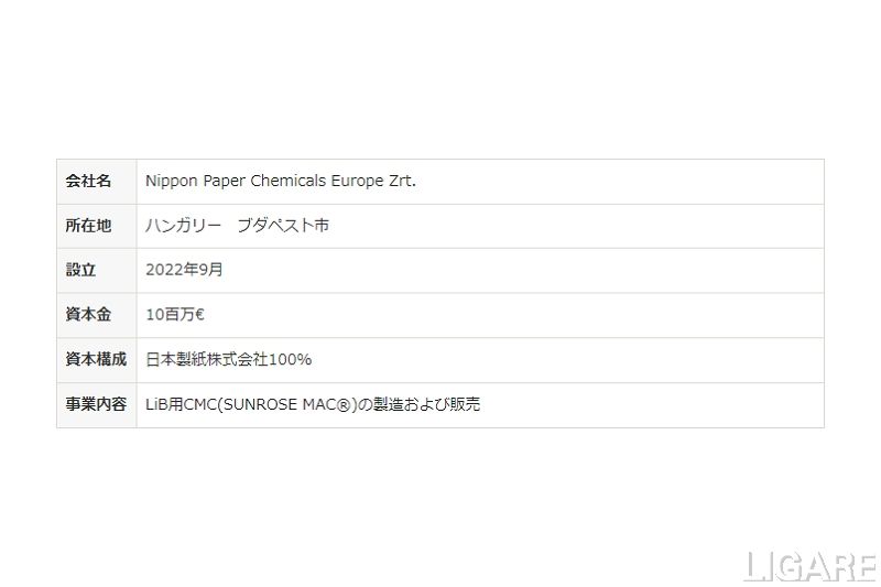 日本製紙、EV用バッテリー材料供給体制強化に向けハンガリーに子会社設立