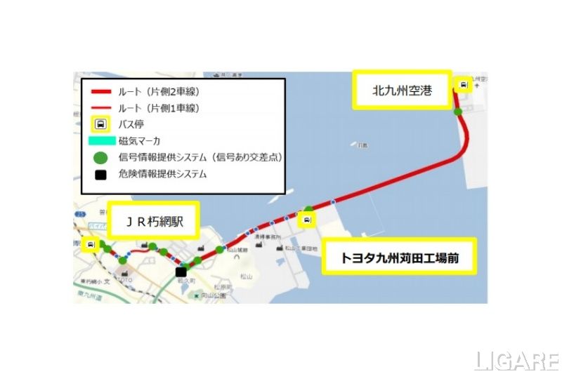 実証実験は10月22日から11月29日にかけてを行う。JR朽網駅から北九州空港までの約10.5kmの区間を運行し、途中でトヨタ九州苅田工場前にも停車する。