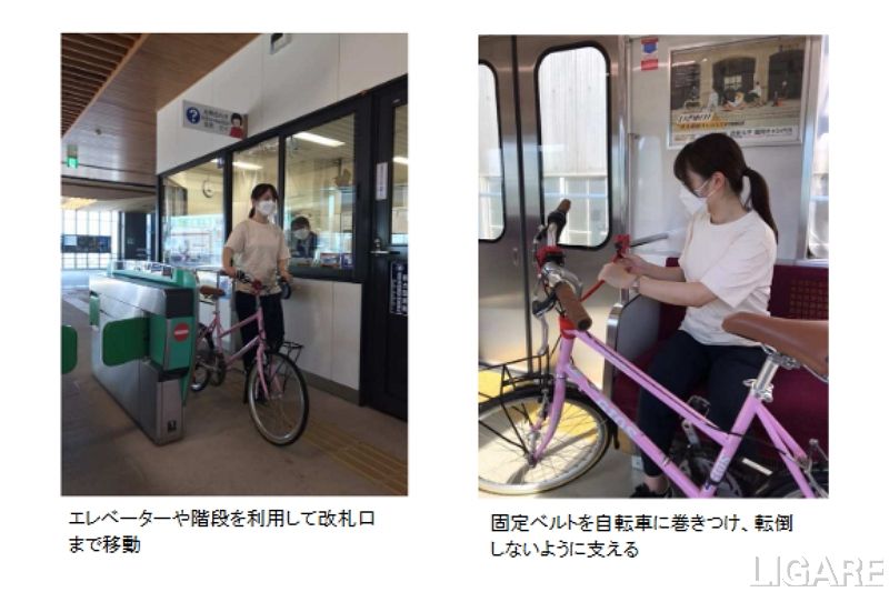 同実証実験では、土曜、日祝日の昼間の時間帯における特急列車限定で、自転車を車内に持ち込むことが可能だ。6両編成の車両の1両を自転車持ち込み可能車両とし、乗車運賃のみで利用できる。