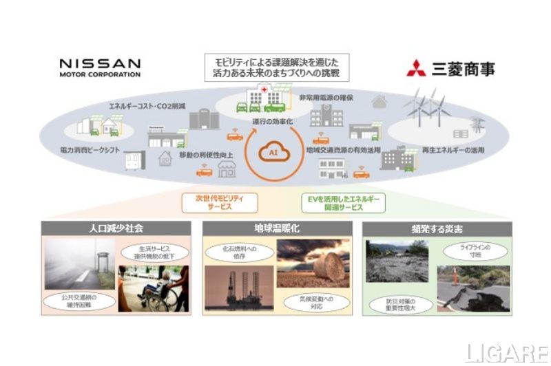 日産自動車(以下、日産)と三菱商事はこのたび、次世代モビリティサービスとEVを活用したエネルギー関連サービスの新たな共同事業検討の覚書締結を発表した。