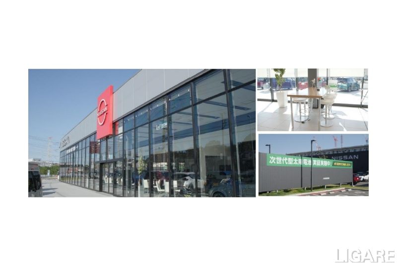 日産自動車は12月4日、神奈川県が実施する「次世代型太陽電池普及促進事業」の採択を受けて進めていた事業について、日産神奈川販売のR1東戸塚店にて、自動車販売店として国内初となる次世代型のカルコパイライト太陽電池の実証開始を発表した。