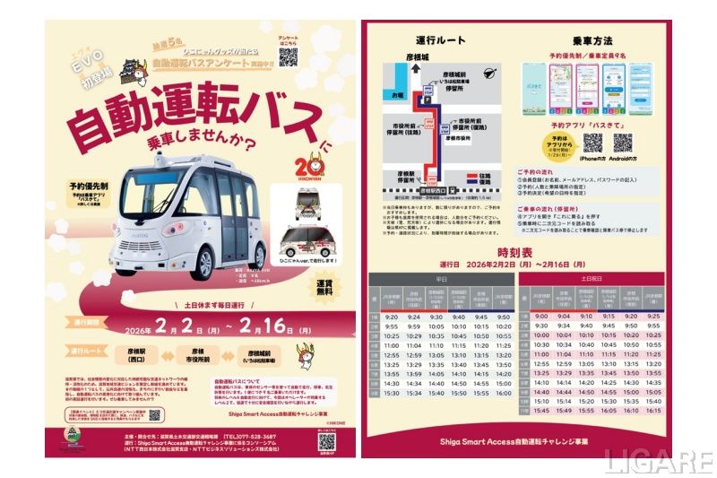 NTTビジネスソリューションズら、自動運転バスの実証を滋賀県で実施 会員限定記事 2026/1/15(木) Post Share Pocket RSS NTTビジネスソリューションズは1月13日、滋賀県の「Shiga Smart Access自動運転チャレンジ事業」をShiga Smart Access自動運転チャレンジ事業に係るコンソーシアムで実施すると発表した。 ※このコンテンツは会員限定です。無料会員登録すると続きをお読みいただけます。 会員登録済みの方はログインしてください。 ログイン ログイン メールアドレス パスワード ログイン情報を記憶 新規ユーザー登録 パスワードをお忘れですか ? LIGARE編集部h.s EVNAVYANTT西日本マクニカ自動運転 Post Share Pocket RSS 関連記事: NTTビジネスソリューションズら、公用車を活用したEVカーシェア実施 NTTビジネスソリューションズら、自治体・法人のEV導入・運用支援「N.mobi」開始 自動運転EVバスの走行実証 マクニカら、長野県上田市で準備開始 マクニカら、自動運転EVバスを活用した四日市市のモビリティ実証に参加 トラストパーク、「車泊(くるまはく)」利用実績が2019年比14倍に急増 全国74地域へ展開拡大 トムトムとAmazonが協業、トムトムのナビアプリとAlexaを統合 CES2026でデモ展示
