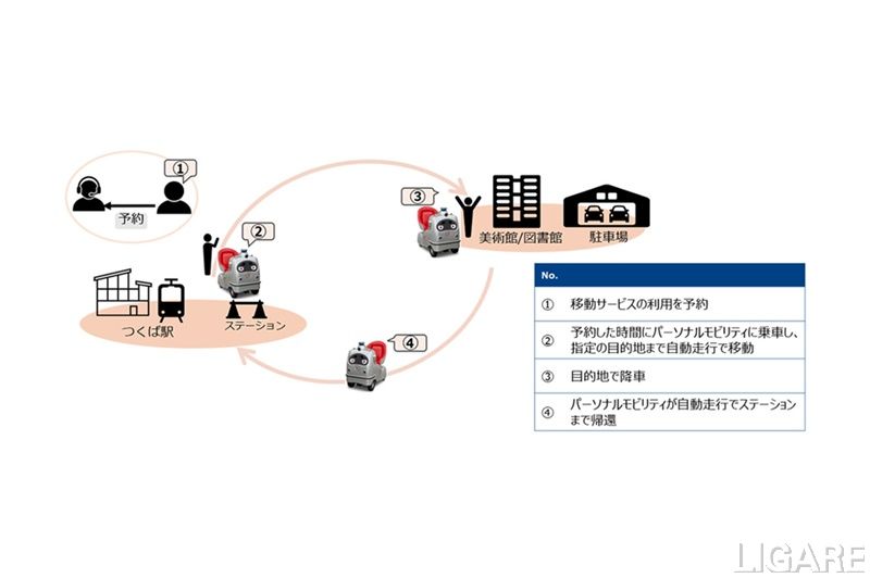 くわえて、同実証では、「つくば駅前での移動サービスの提供」と「自治会館を拠点とした移動・買い物支援サービスの提供」を実施する。「つくば駅前での移動サービスの提供」では、つくば駅を起点に、パーソナルモビリティを活用した近距離移動および荷物搬送サービスの提供に関する実証を行う。ロボットによる荷物のポーターサービスをトライアル実施し、つくば駅周辺における、人の移動や荷物搬送に関するニーズを把握する予定だ。1月9日~1月17日に実施する。