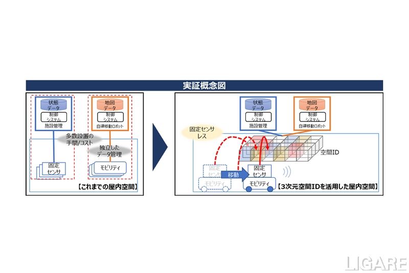 同実証は、三菱電機株式会社(以下、三菱電機)とともに、デジタル庁から受託した「デジタルツイン構築に関する調査研究」において、空間ID※ をキーにしたデータ流通の第一歩として実施するものだ。自律移動ロボット(以下、AMR)を活用し、このような課題解決を目指し、AMRの有効性を検証する。同社は、AMRにより、移動センシングの仕組みで固定センサの設置にかかるコストや手間を軽減でき、収集可能エリアを拡大することができると考えているという。