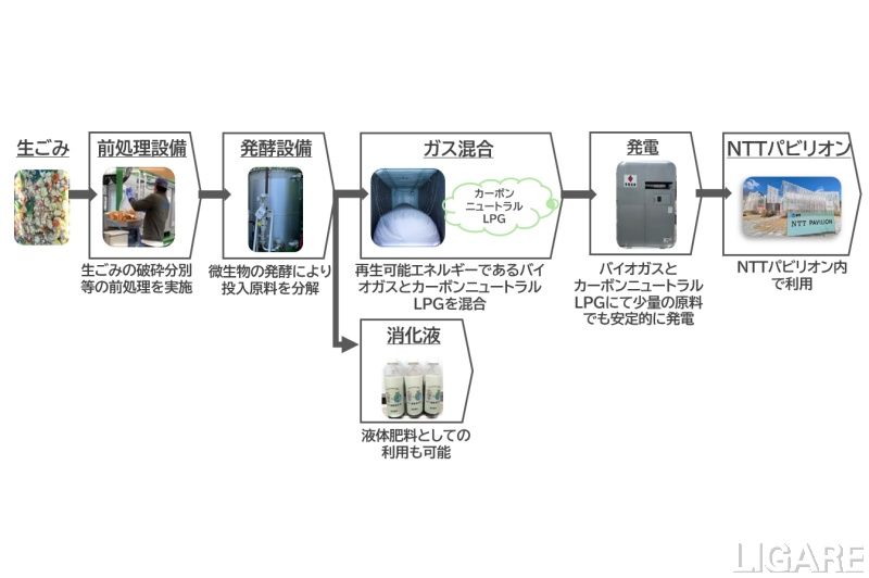 NTT東日本およびビオストックは4月10日、大阪・関西万博のNTTパビリオンにおいて、生ごみをオンサイトで再生可能エネルギーに変えて資源循環を実現する超小型バイオガスプラントを出展することを発表した。