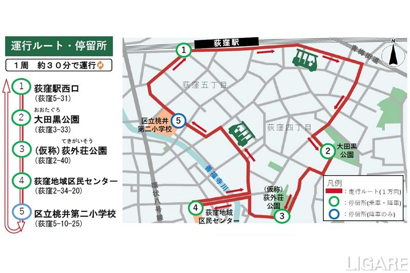東日本電信電話株式会社東京事業部(以下、NTT東日本)ら3社は、グリーンスローモビリティの実証運行を杉並区荻窪地域(荻窪駅南側エリア)で実施する。10月25日付のプレスリリースで明かしている。