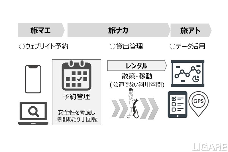 具体的には、東岡崎駅から大河ドラマ館への約1.5㎞の快適移動支援として、「C+walk」をオンライン予約・決済、貸出、返却の実証を行い、来街者および住民の移動の快適さや利便性について検証した。実証期間は、2022年11月23日~2023年2月12日だ。