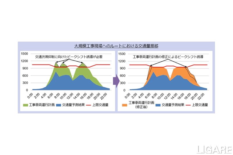 しかし、これらに対応するインフラを整備するための都市開発工事においても多数の工事車両が集中し、周辺道路の混雑が発生することがある。そのため、既存の交通システムを前提とした交通渋滞抑制も依然として大きなニーズがある。
