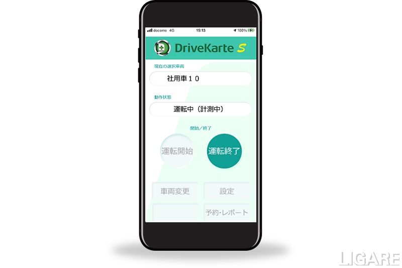 「DriveKarte S」は、スマートフォンのGPSを用いて事故につながるリスクの高い運転行為(急発進、急加速、急減速、ながらスマホ運転 など)を検知し、ドライバーに音声で注意喚起するとともに、運転管理者にもリアルタイムに通知を行う。スマートフォン上で動作するため、社有車、リース車、レンタカー、カーシェアリングサービスを問わず利用できる。