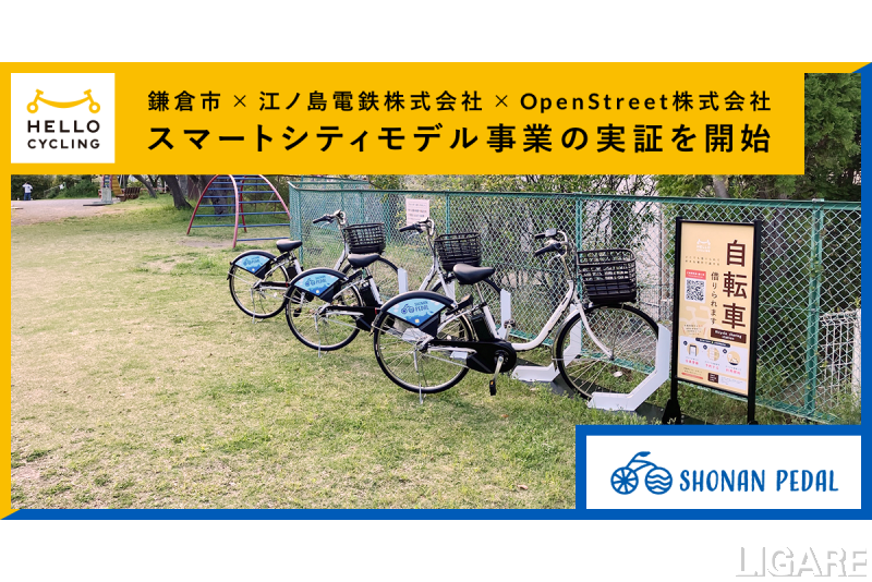 OpenStreet株式会社(以下、OpenStreet)は4月19日、神奈川県鎌倉市(以下、鎌倉市)と江ノ島電鉄株式会社(以下、江ノ島電鉄)と共同で、鎌倉市スマートシティモデル事業「シェアサイクル」の実証実験を開始した。交通結節点から距離がある住宅地における外出促進に向け「シェアサイクルサービス」による移動手段を提供し、有効性の検証を行う。