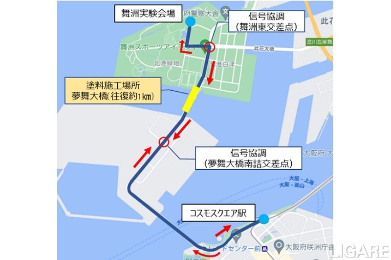 また、同実証では、改正道路交通法でレベル4実装の条件となる複数の車種・台数の自動運転車両を遠隔監視する。さらに、夢洲・舞洲などの公道上で、万博会場へのアクセスルートを想定し、今回は新たにGPS受信不良エリアでも自動運転が可能な特殊塗料を用いた自動運転走行の実証も行う予定だ。