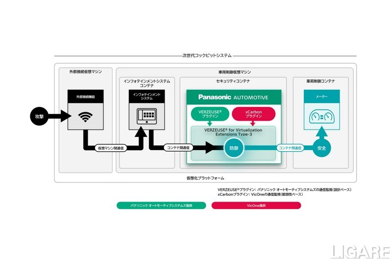 今回検証したソリューションは、2024年10月にパナソニック オートモーティブシステムズが発表した攻撃検知・防御ソリューション「VERZEUSE for Virtualization Extensions Type-3」に、VicOneの車両向け組込型セキュリティソフトウェア「xCarbon」を統合し機能拡張したものだ。これにより、Automotive Grade Linux※のリファレンスボード上で、コンテナ間通信の効率的な監視が可能となり、自動車の次世代コックピットシステムへ適用可能であることを確認しているという。