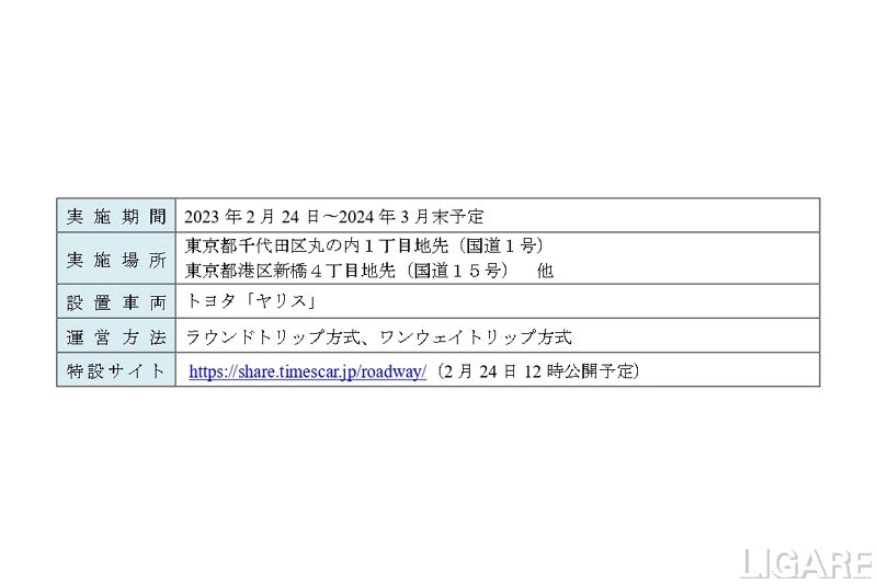 タイムズモビリティ株式会社(以下、タイムズモビリティ)は、2月24日から国土交通省(以下、国交省)が期間を延長し実施する「道路空間を活用したカーシェアリング社会実験[車種拡大]」にカーシェアリング事業者として参加する。パーク24株式会社が2月20日付のプレスリリースで明かした。