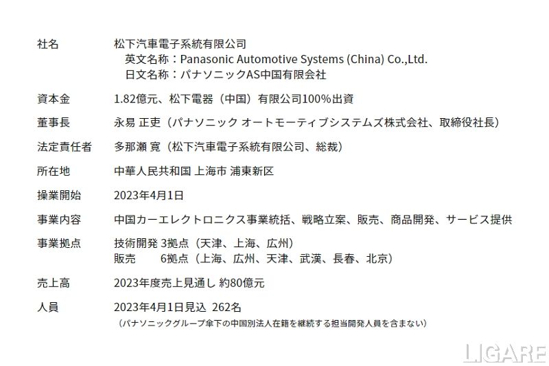 パナソニック オートモーティブシステムズ、新会社を中国に設立
