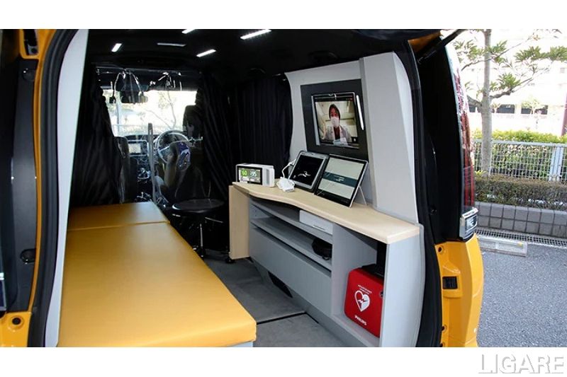 使用車両には、遠隔聴診器、看護師の視線を医師が遠隔で確認できるウェアラブルカメラを導入し、より対面での診療に近づける工夫を施している。平時だけでなく有事の車両利用が期待され、災害時には避難所などでの診療対応も可能にするため、フィリップスのAED「ハートスタートFRx」なども搭載した。さらに、給電システムを備えたハイブリッド車にすることで、診療に必要な電源も確保している。