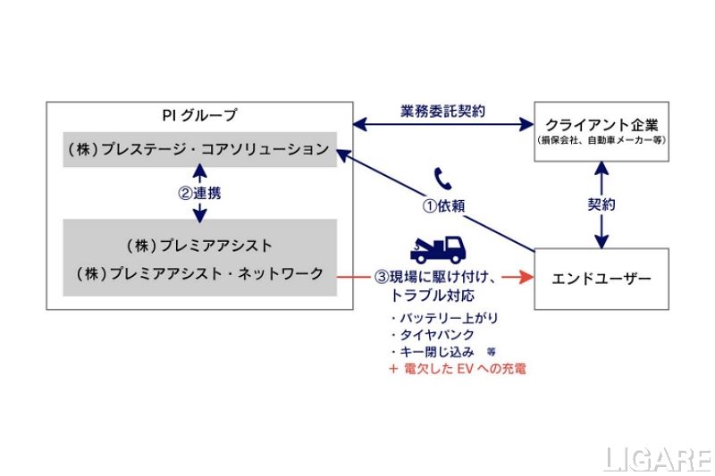 昨今、EVの普及が急速に進んだことで、乗用車で起こるトラブルの内容にも変化が生じている。PI子会社である株式会社プレミアアシスト(以下、プレミアアシスト)と株式会社プレミアアシスト・ネットワークは、以前から自動車のトラブルが発生したエンドユーザーのもとへ駆け付け、現場対応を行うロードアシストサービスを提供してきた。