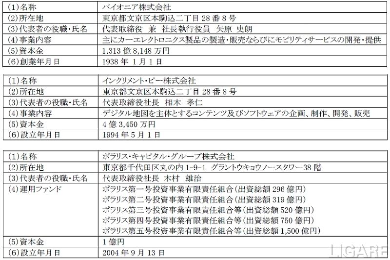 パイオニアは10日、地図事業を営む完全子会社インクリメント・ピーの全事業を、ポラリス・キャピタル・グループが運営するポラリス第5号投資事業有限責任組合等の保有する特別目的会社PIPホールディングスに対して譲渡すると発表した。