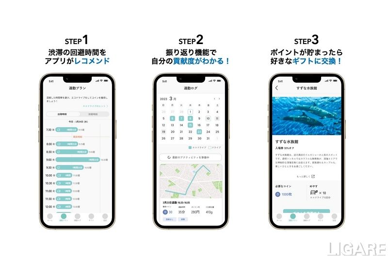 同サービスは、自動車の時差通勤や環境に配慮した運転を評価し、それに応じた環境ポイントを付与することで、従業員の行動変容を促し、企業や自治体の働き方改革へ貢献するものだ。自動車通勤者が在籍する企業や自治体を対象としている。