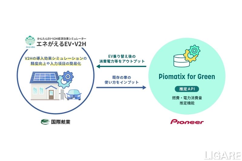 パイオニア株式会社(以下、パイオニア)提供の「EV消費電力推定技術」が、国際航業株式会社(以下、国際航業)提供の「エネがえるEV・V2H」と連携する。これにより、同サービスにおけるEVやV2H導入効果シミュレーションのさらなる高精度化を実現する。