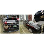 参加タクシーには、後部ドア・防犯パネル等に pring ステッカーを貼っている。