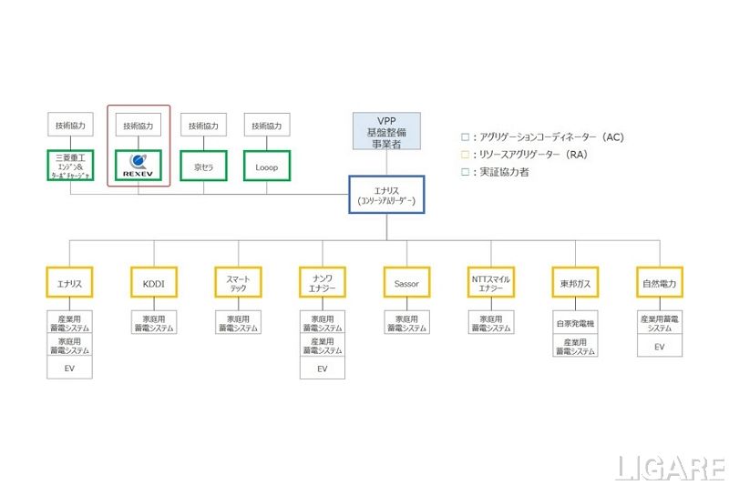 今回の実証では、株式会社エナリスがコンソーシアムリーダーとなり、家庭用蓄電池やEVなどの低圧リソースの活用をはじめとしたVPP(Virtual Power Plant:バーチャルパワープラント)などのアグリゲーションビジネス拡大のための実証事業を12社で行う。VPPとは、再生可能エネルギーと電力の需給バランスを調整設備だ。これまでは、電力会社の発電設備が調整していたが、今後は、急速に普及が予想される蓄電池やEV等の分散型エネルギーリソースをまとめて一つの発電所のように機能させるVPPの構築が進められている。
