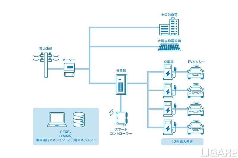 なお、REXEVは、車両運行マネジメントと充電マネジメントを組み合わせたシステムを用いて、タクシーの運行に合わせて充電制御の最適化を行うことで、充電管理にかかる業務負荷を軽減する。同時に、充電制御により電力のピークを抑制し、タクシー営業に影響を与えない範囲で電力コストを最小化するという。そして、同事業を通じて、タクシーのEVシフトに貢献すると述べている。