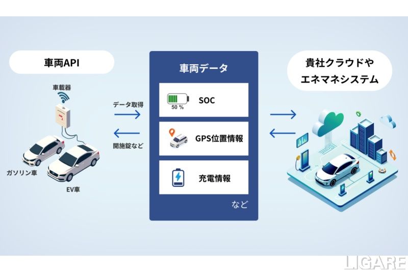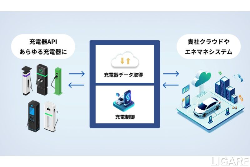 また、充電制御(エネルギーマネジメント)機能では、電力価格や再生可能エネルギーの出力、車両の利用予定などと連動した高度な充放電制御をAPIで提供することで、ローカルEMS(エネルギーマネジメントシステム)やVPP実証との連携など、EVを電力リソースとして活用するための実装を短期間で構築できる。