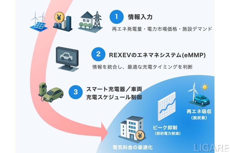REXEV社は9月18日、EVを活用した新たなサービスや事業開発を支援する統合プラットフォーム「eモビリティマネジメントプラットフォーム(eMMP)」の外部展開を本格化すると発表した。