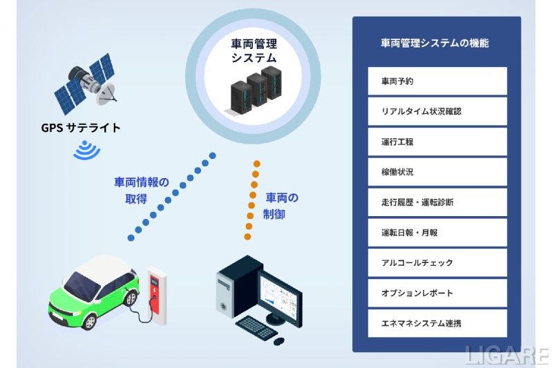 そして、車両管理(フリート・マネジメント)機能では、車両の位置・SOC(State Of Charge、充電残容量)・稼働予定・予約などをリアルタイムで取得・管理できるインターフェースを提供。複数拠点のEVの可視化や、業務システムとの統合による運用最適化も容易に実現可能とのことだ。