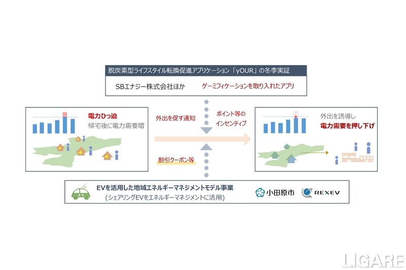 「yOUR」は、「どうせなら楽しく、地球に優しい生活を」をコンセプトに掲げている。SBエナジー株式会社、ENEOS株式会社、株式会社エネワンでんき、株式会社東急パワーサプライの4社が、同実証の夏季実証を2022年8月初旬~9月末に実施した。